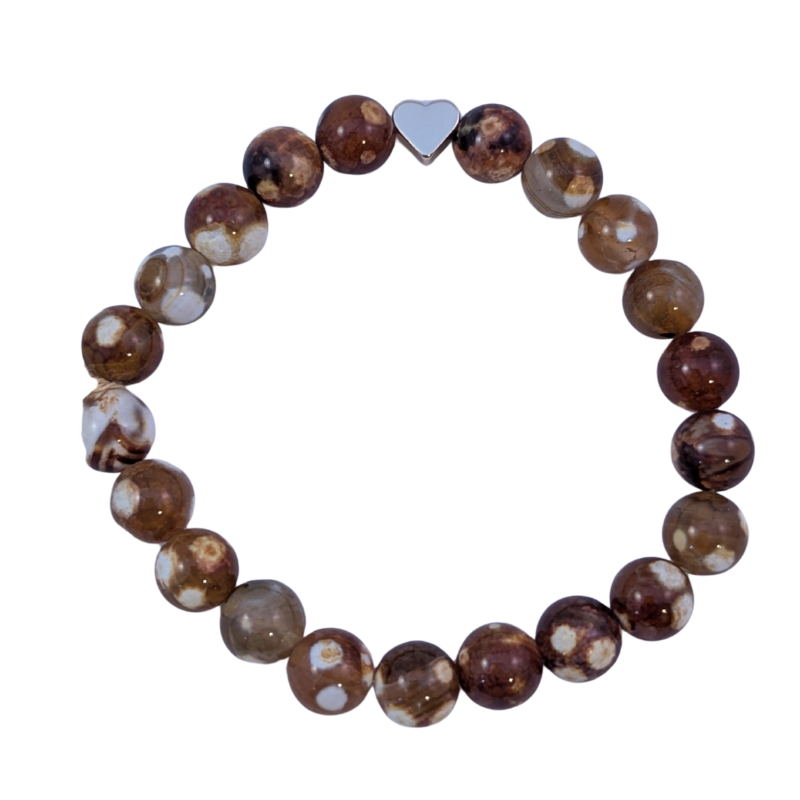 Handgjort armband / mala skapat av stenpärlor i Eldagat Giraffe, tillsammans med ett hjärta i guldig metall