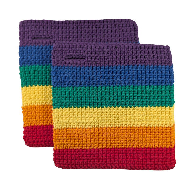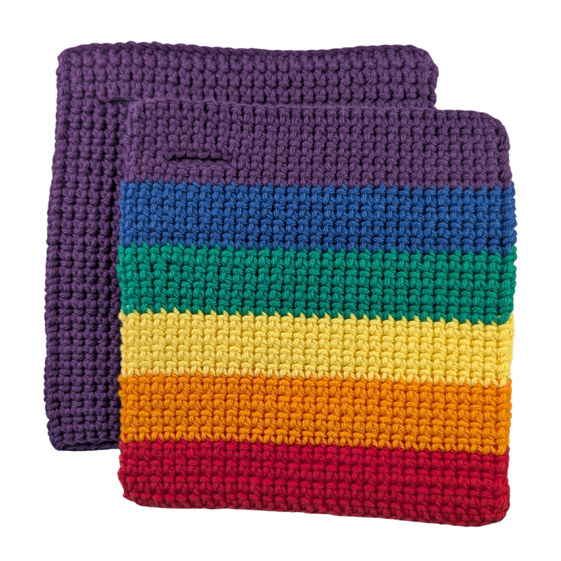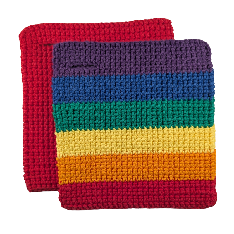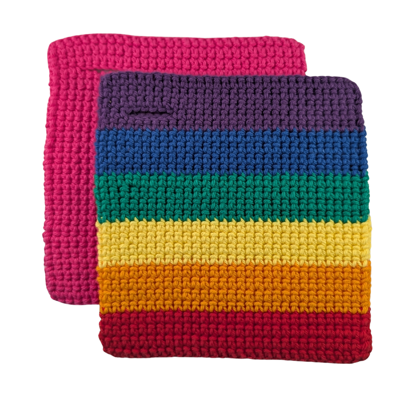 Därför kommer du att älska våra grytlappar: Varje grytlapp är svensktillverkad och handvirkad med kärlek. Vi har valt en teknik som gör dem extra tjocka och gedigna, vilket innebär att du aldrig behöver dubbelvika dem för att skydda händerna – de är värmetåliga, trygga och hållbara nog att användas varje dag. Med de starka, klara färgerna är de designade för att vara ett litet “smycke” som glittrar och lyser upp ditt kök.